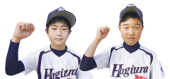 キャプテンの谷井くんは「毎試合チャンスでヒットを打つ」、副キャプテンの放生くんは「ホームランを打って勝利に貢献する」と答え、チームの目標は共に「全国大会出場!」と話してくれました。