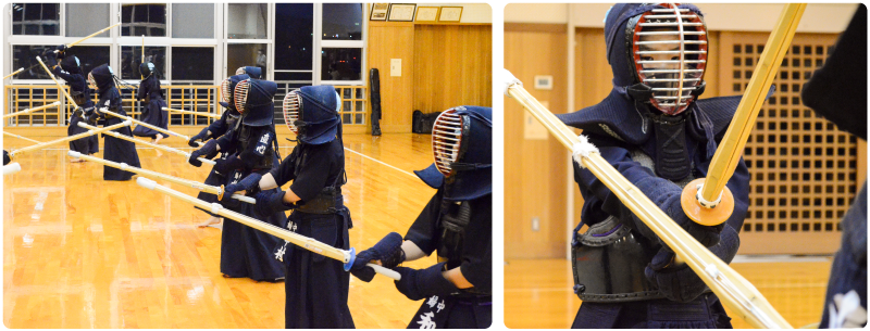 日々の稽古では、礼法と基本に忠実に基礎練習を行っています。基本を着実に身に付けることで全国に出ても恥をかかない、活躍できる選手に成長していくそうです。