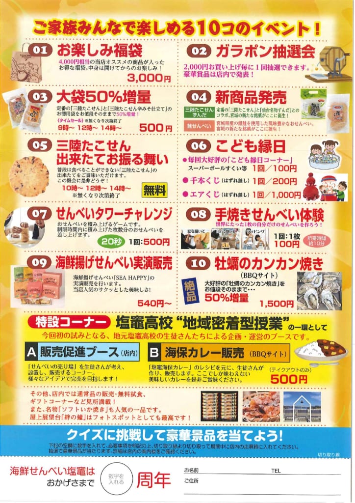 ★海鮮せんべい塩竃 ありがとう10th感謝祭のおしらせ★