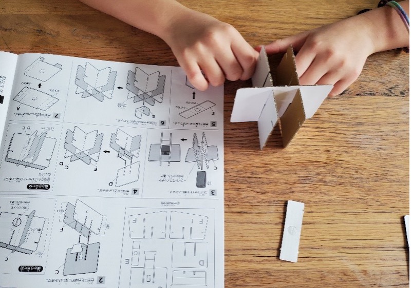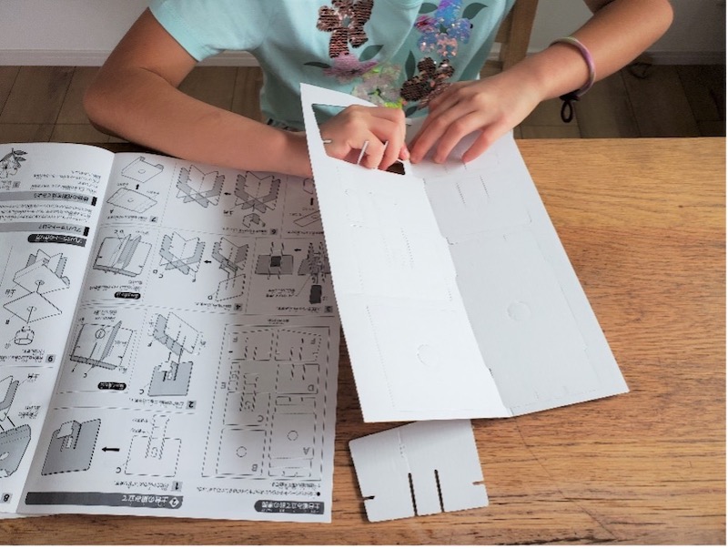 プラモデルを作ったりダンボールで工作をしたりすることが好きなせいか、自分で組み立てる作業が得意のよう。図を見ながら一人で組み立てています。