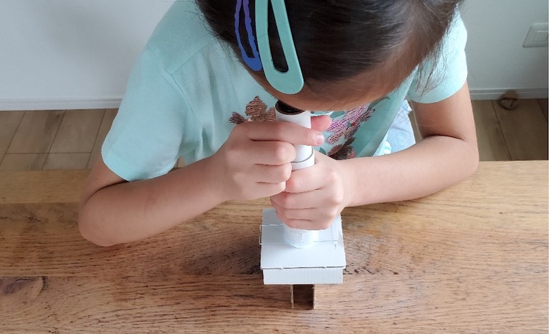 「今度、理科の授業で顕微鏡を使うから、自分で作っていろいろな物を見てみたい!」と、作る意欲まんまんのモエちゃん。