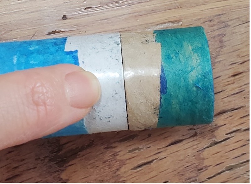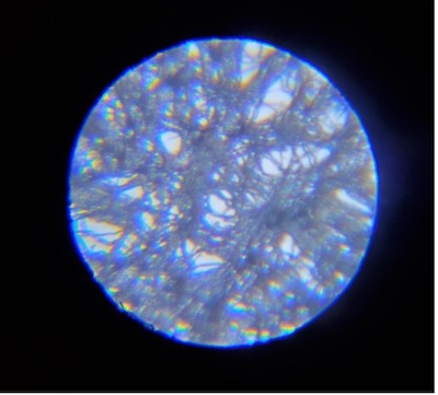 きれいにテープを貼り直したら接眼筒がスムーズに動くようになったので、再度、髪の毛を顕微鏡で観察してみることに。「すごく太い線が見えるよ。ママの髪の毛も見せて。ママは色が薄いね。他に何かないかな…」と、周りを見渡し、ティッシュペーパーを発見。