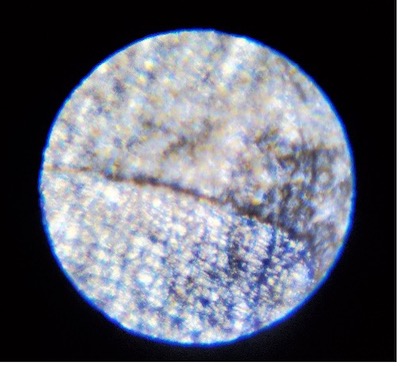 LEDライトのスイッチ部分を確認してみると、スイッチが動かないように小さな部品が付いていたのを発見。それを外してから、再度顕微鏡を覗いてみると、今度は「筒が固くて動かしづらい。ピントが合わせられない…」と、困った様子。