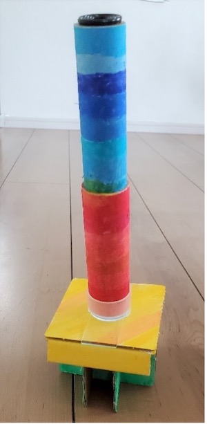 「間違えていないか、ドキドキする」と、緊張しながらも、無事に接眼筒が完成。あとは土台に差し込むだけ。ここまで20分かからずにできました。