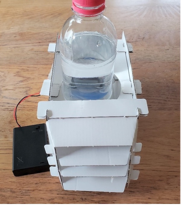 このほか、500㎖の水を入れて凍らせたペットボトル、単三電池が三本、色をつけるためのマジックや絵の具、セロテープを自分で用意する必要があります。