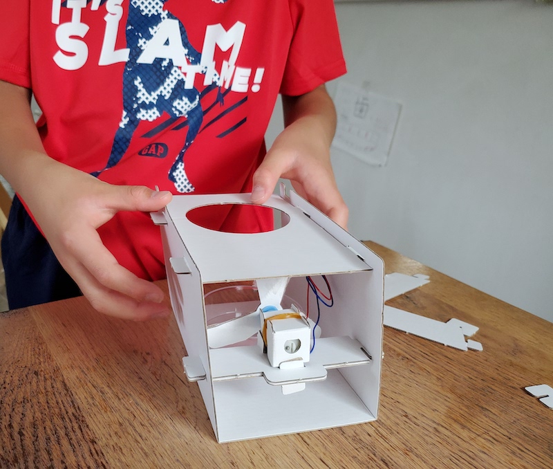 あとは組み立てた箱に、プロペラが付いたモーターと送風口を付ければ完成です。意外にも25分ほどで完成しました。