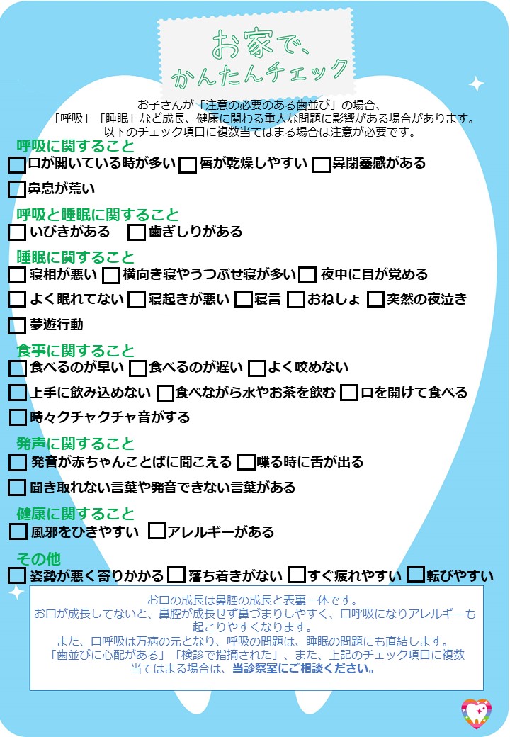 このため、骨格、顔立ち、歯並びを正常に発達させるためには、歯並びの治療だけではなく出来るだけ早い時期から