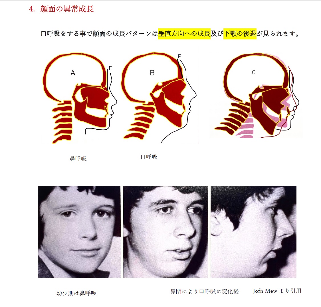例えば子どもが口呼吸を続けていると、アゴが未発達で、気道が狭くなり、運動パフォーマンスも制限されます。
