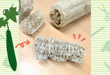 乾いたへちまの形をととのえたり、ひもをつけてお皿洗いなどでつかえる ❝自然にやさしいエコなたわし❞ を作ってみよう!