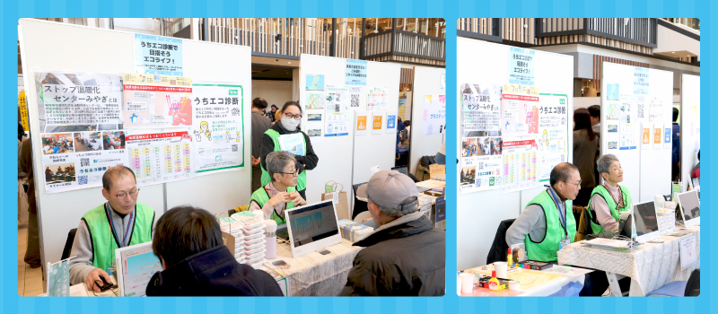 地球温暖化についてのポスター展示や、専用のソフトを使ってご家庭ごとの状況に合わせた節電・省エネ対策を提案してもらいました。