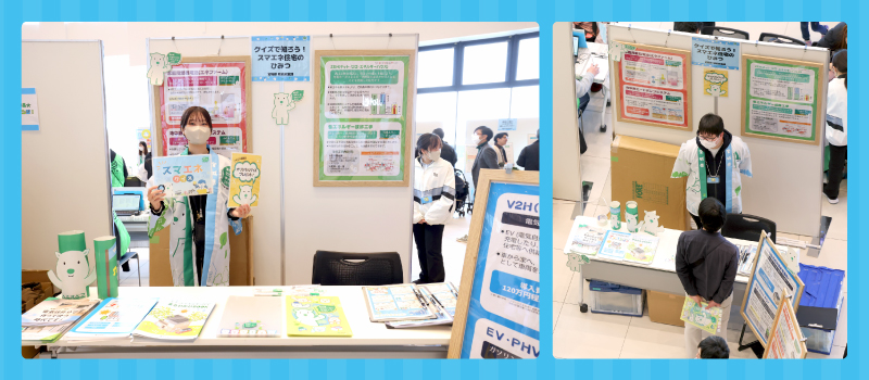 電気を賢く使うスマエネ住宅について、クイズで楽しく学びました。参加者にはへらすベアグッズがプレゼントされました。