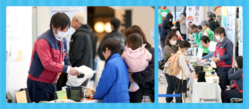 会場受付には開場前から来場者の皆さんで長い待機列が出来ていました。入場後は皆さんそれぞれ興味のあるブースへ足を運び、体験やクイズなどを通して楽しく環境についての学びを深めていたようです。