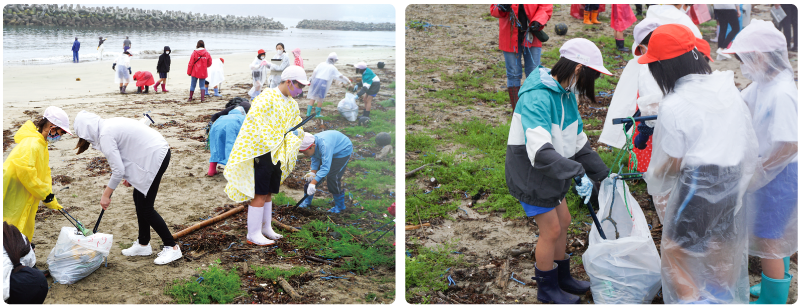 活動は海岸清掃からスタート。海岸には空き缶やペットボトルなど、多くのごみが落ちています。