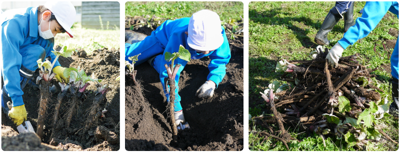今月紹介するのは、東根小学校が取り組む「岡の台ごんぼの栽培」です。