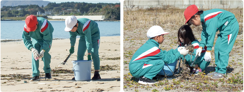 今月紹介するのは、大谷小学校の「大谷海岸のごみ調査」です。4年生が総合的な学習の時間「エコプロジェクト~大谷の海を守るために~」の一環として、約10年前から毎年続けている活動です。目的は、海岸にあるごみの現状を知り、大谷海岸の環境問題に目を向けることです。
